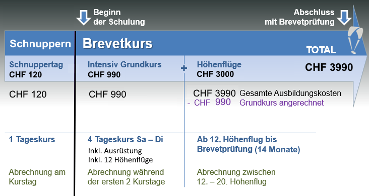 | Brevetkurs Bestehend aus Grundkurs und Höhenflugkurs | 3990.- |